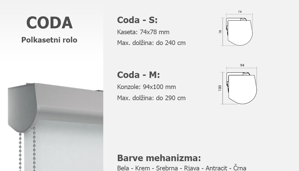 Mehanizem in tkanine vodilnega svetovnega proizvajalca Coulisse (Nizozemska), upravljanje z ročnim ali motornim pogonom.